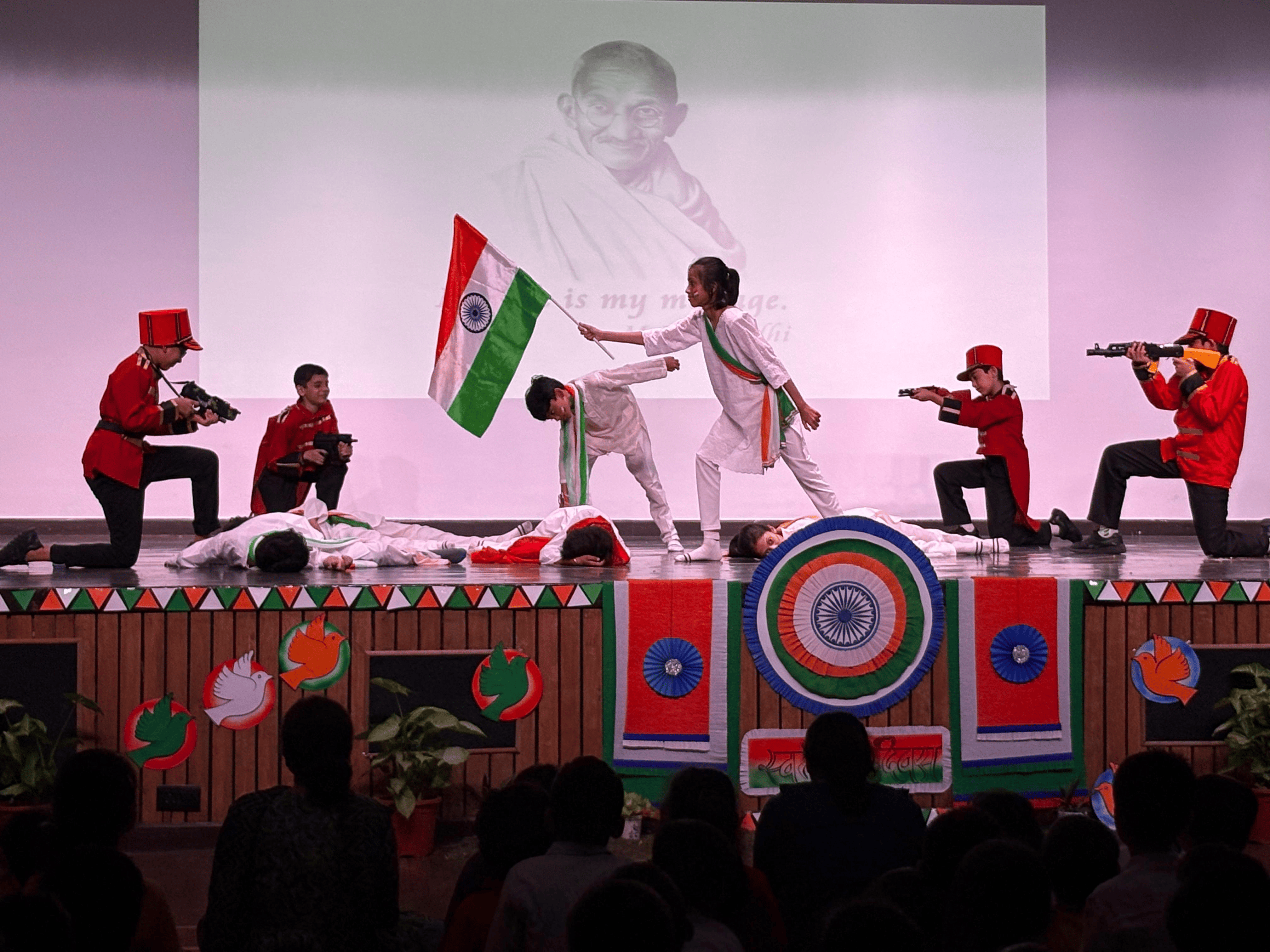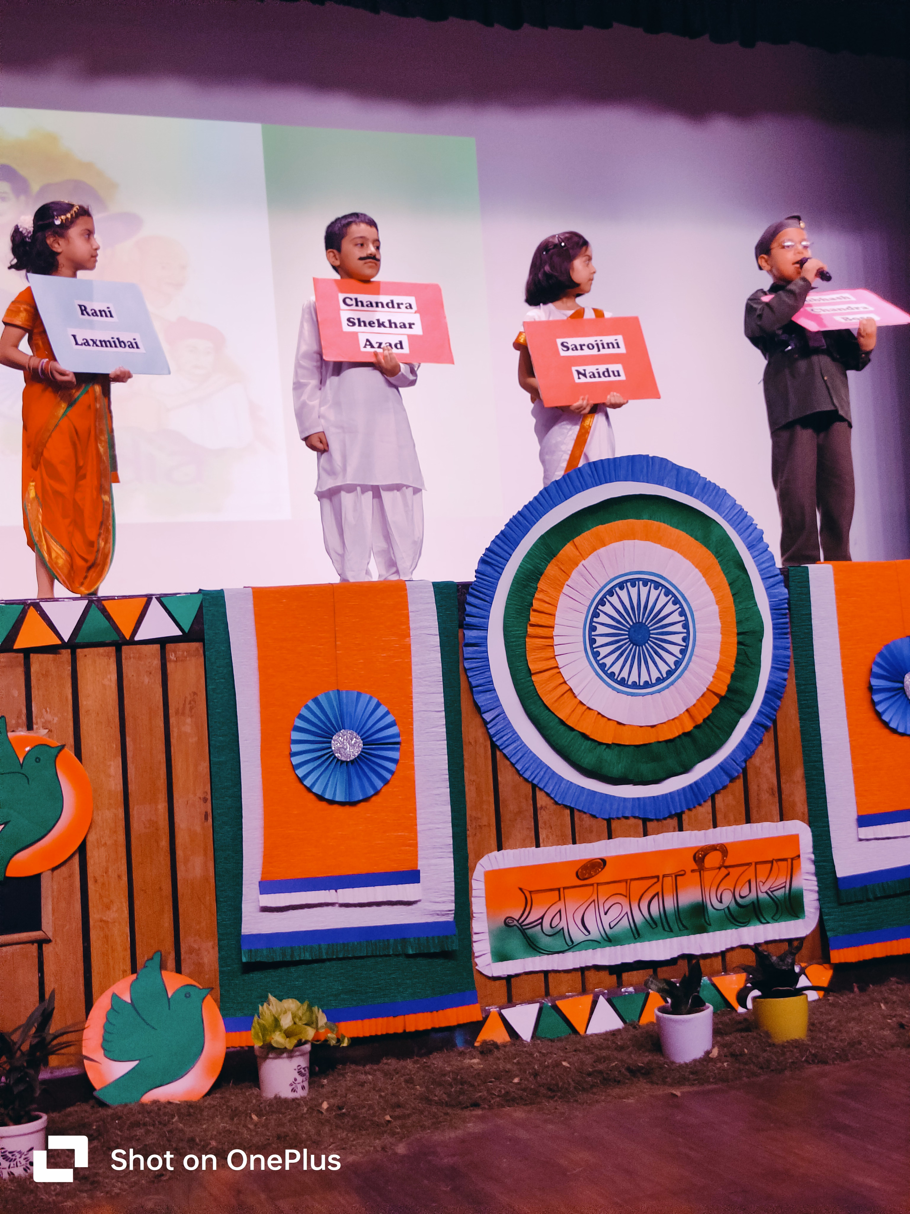 Young performers dressed as eminent freedom fighters—Mahatma Gandhi, Rani Laxmibai, and Subhash Chandra Bose—won hearts with their confidence and charm.