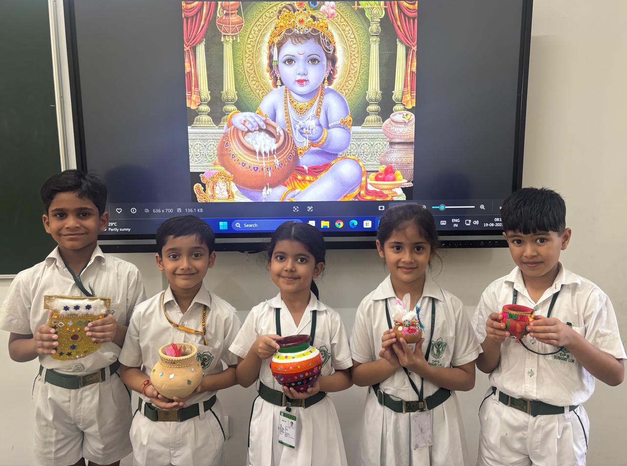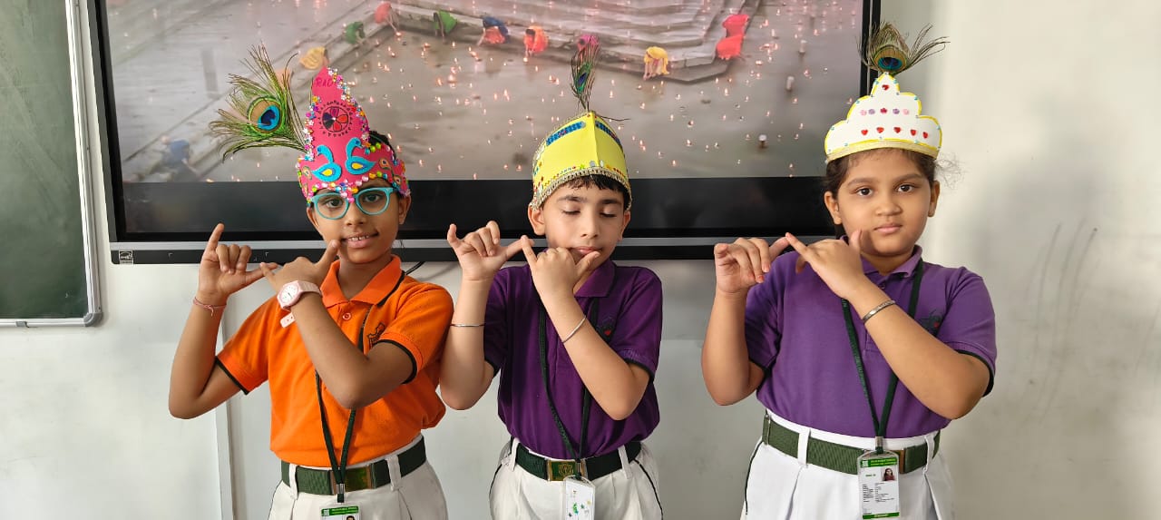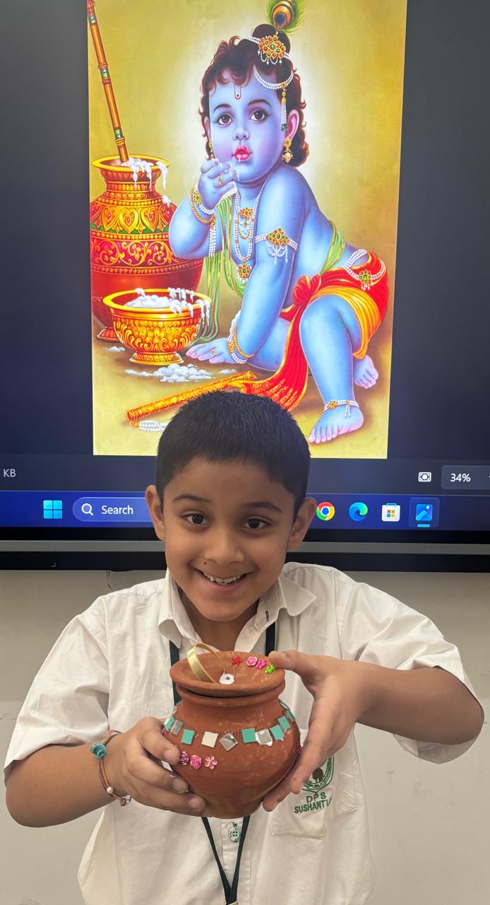 On 19 August 2025, the corridors of the Primary Wing resonated with festive cheer as the learners of Grades IV and V immersed themselves in the Krishna Crown Making, while those from II and III enjoyed decorating Matkis beautifully and creatively.