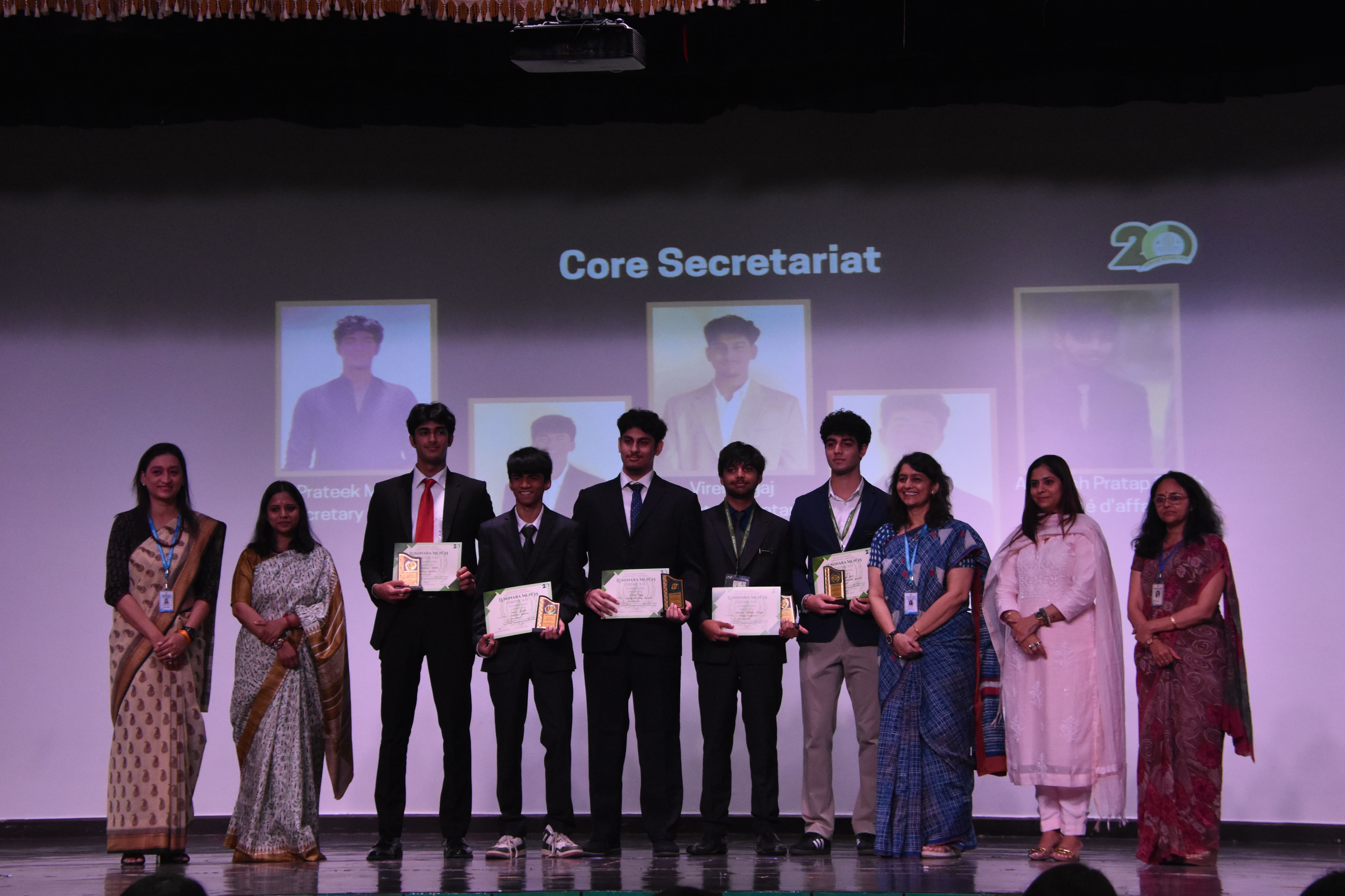 Day 1 of LUMINARA MUN 2025 unfolded with energy and elegance at DPS Sushant Lok, Gurugram, as over 300 delegates from 26 schools came together for a celebration of ideas and diplomacy. The Opening Ceremony, graced by Principal Ms. Aparna Magee, inspired all with a call for dialogue, empathy, and global citizenship. The Secretary-General, Prateek Mehta, set the tone for meaningful debate as committees buzzed with discussion, collaboration, and youthful leadership — truly reflecting the MUN spirit of deliberate, debate, and drive change.