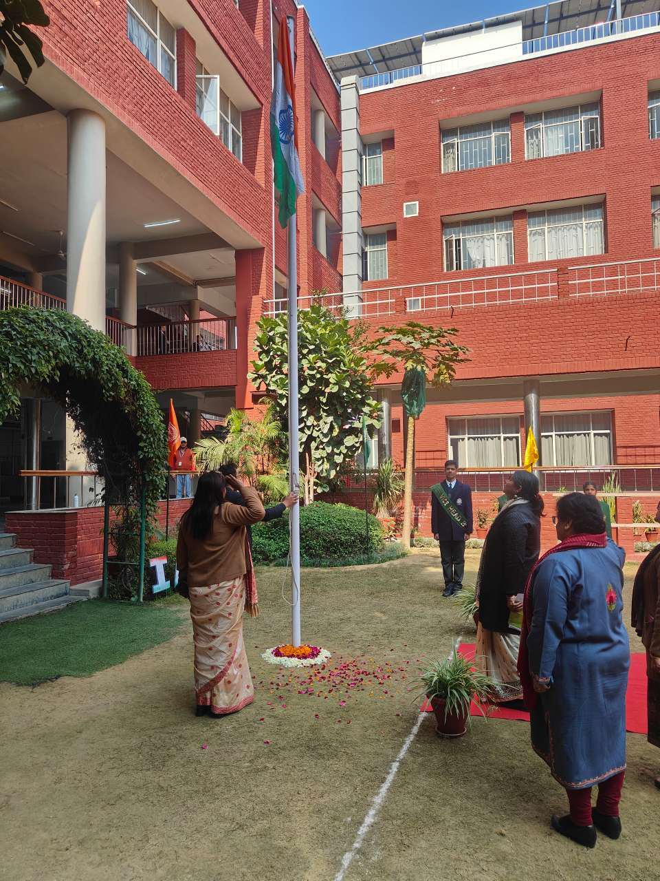 The celebration commenced with the hoisting of the National Flag by the school’s Director–Principal,Ms. Mahua Das Gupta, along with Vice Principal, Capt. Rekha Kapoor, Ms. Leena Singhal, Vice Principal (Junior School) and the respected section heads. This was followed by the National Anthem,instilling a deep sense of respect and reverence among all present. Addressing the gathering, Vice Principal Capt. Rekha Kapoor highlighted the importance of the Indian Constitution and its unique features namely Sovereign, Socialist, Secular, Democratic and Republic as enshrined in the Preamble. She inspired the students to uphold the ideals of responsibility,perseverance and self-reliance, values that form the foundation of both the nation and the school.The Vice Head Boy, Raghav Rao, and Vice Head Girl, Sargun Singh, addressed the gathering with thoughtful reflections on the significance of Republic Day and the responsibilities of young citizens. The celebration was further enriched by vibrant cultural performances, including classical dances,patriotic songs and a dignified Guard of Honour, beautifully showcasing India’s unity in diversity.The programme concluded with a message emphasising collective effort in building a strong and progressive nation.